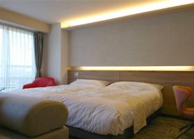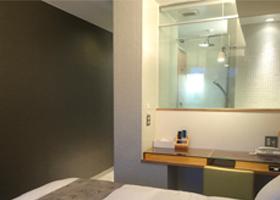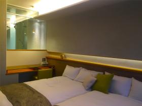 お部屋は23㎡と若干狭目ですが、シンプルススタイリッシュなお洒落な内装と、トイレ・洗面台・シャワールームには高級感のある全面モザイクタイルを装飾し、またごゆっくりお休み頂けるようベッドは、シモンズ社製のゆったりサイズ(幅110cm)のツインタイプ。